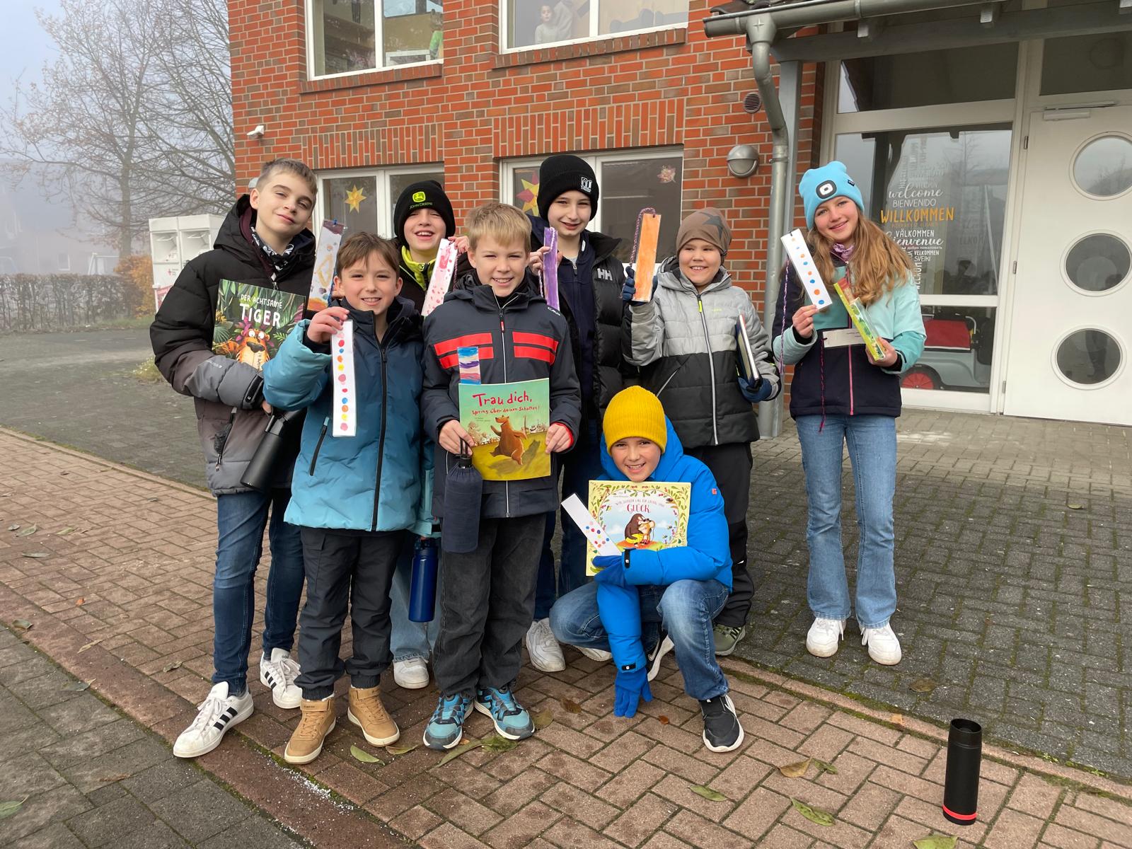 Zum zweiten Mal machten sich die Klassen 6 am internationalen Vorlesetag auf den Weg, um mit ihren Lesekünsten Freude zu bereiten. Viele ehemalige Ostwall- und Ludgerischüler*innen freuten sich, an ihre alte Wirkungsstätte zurückkehren zu dürfen, um dort den Zweitklässlern vorzulesen. Zwei weitere Gruppen machten sich auf den Weg in Kindergärten, wo sie nicht nur als Vorleser, sondern auch gleich als Spielgefährten gerne angenommen wurden. Eine fünfte Gruppe besuchte unsere Nachbarn, das Seniorenheim, wo sie in einer Demenzgruppe für Abwechslung sorgten.